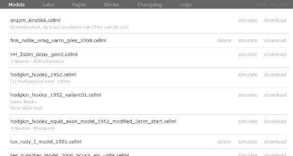 eSolv biedt de docent een ‘easy to use’ beheeromgeving. Met bestaande CellML modellen genereer je simulaties die passen bij het niveau van de student.